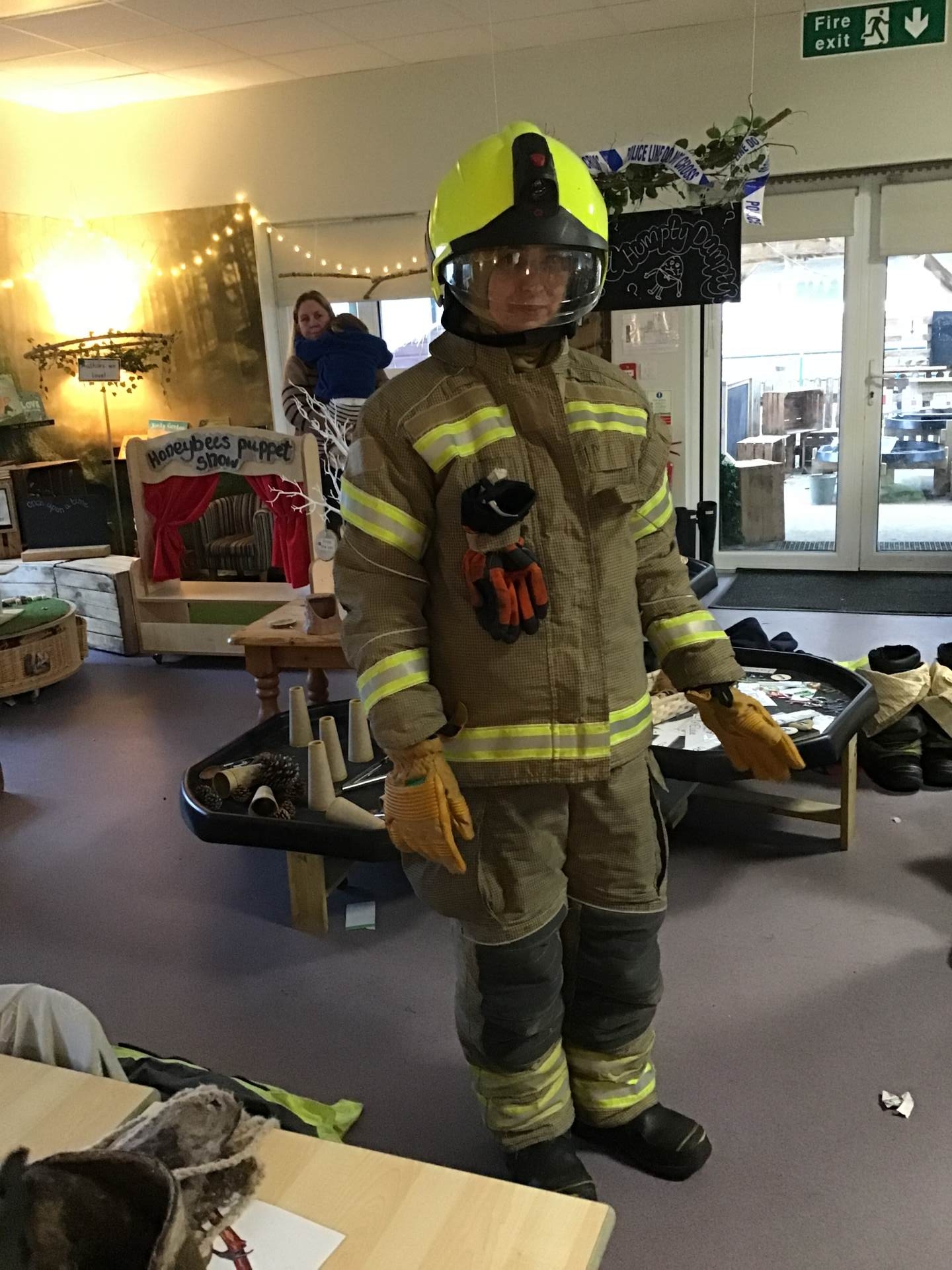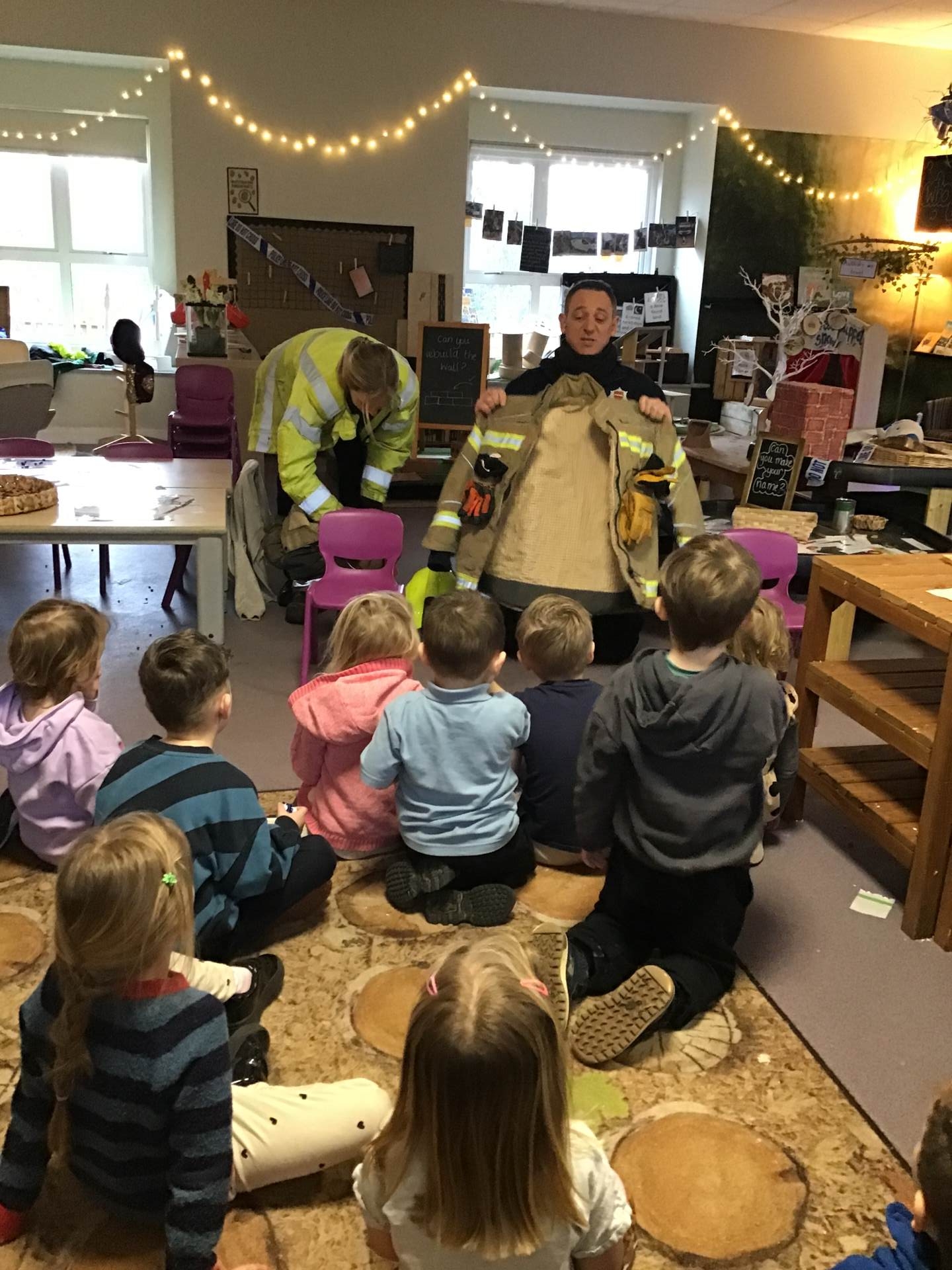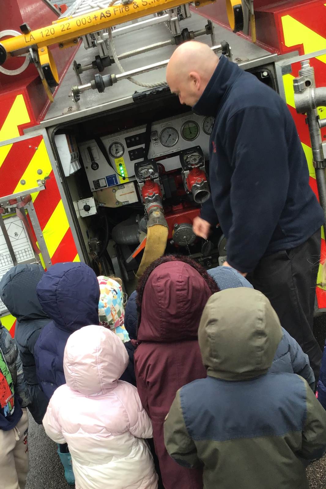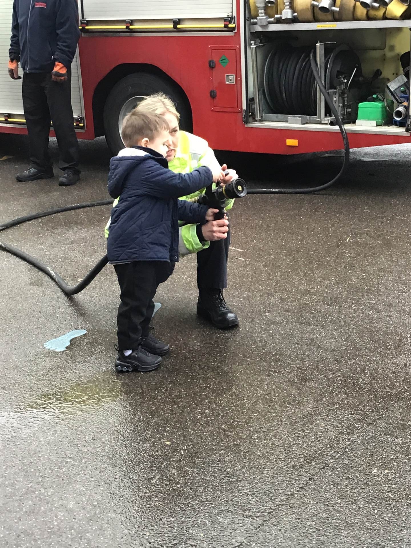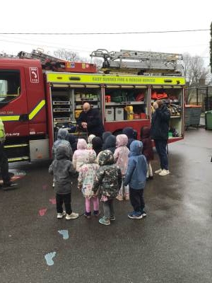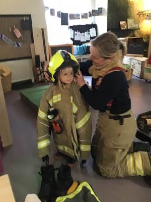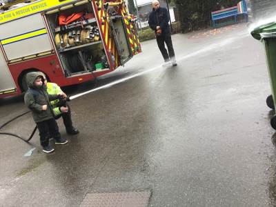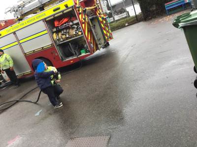 On Thursday, we were visited by the Fire Brigade, who brought along their magnificent fire engine for the children to climb aboard. The firefighters showed us their uniforms and explained the important work they do to keep us safe from fires. But the pièce de résistance was when the children got to have a go at being a firefighter, using the hose to put out "fires" - the squeals of delight were music to our ears! It was wonderful to see our little ones learning about the bravery and skill of our firefighters.