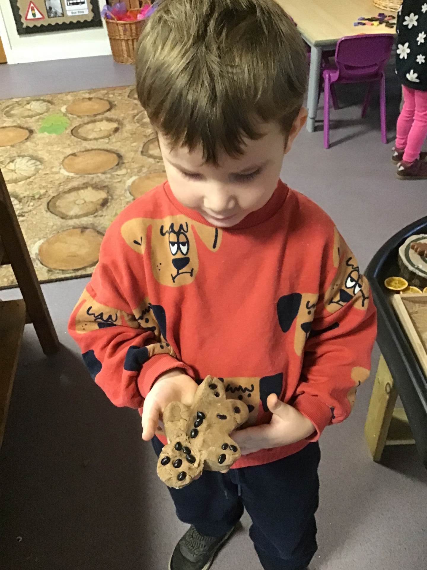 Storytime was a highlight of the week, as we brought the classic tale of the Gingerbread Man to life through our puppet show. The children's eyes sparkled with delight as they retold the story and then got creative in our dough kitchen, crafting their very own gingerbread men. The sweet aroma of freshly baked treats wafted through the air, as we continued the baking theme making mince pies on Wednesday. In our art area, we reinforced our concept of "down" through a series of fun activities, perfectly complemented by our Rhyme Time favourite, "Incy Wincy Spider". As we sang and acted out the song, we explored the idea of rain coming down, which beautifully linked to our learning from the previous week. The children's understanding of this concept grew, and they were able to apply it to various situations, demonstrating their developing problem-solving skills.