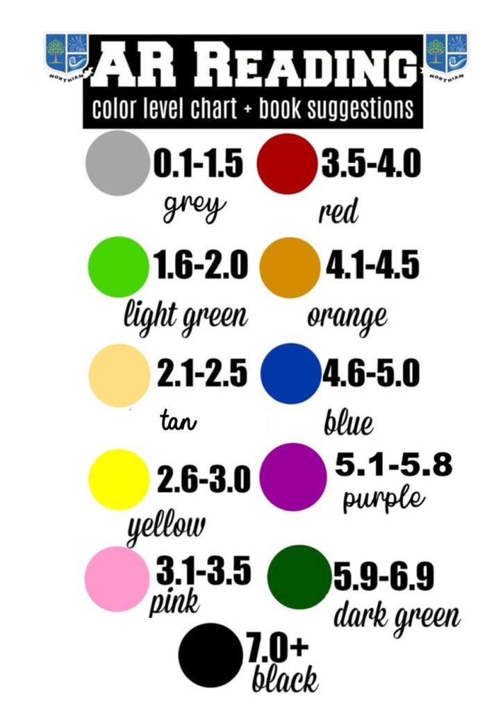 Book Levels are reported using the ATOSTM readability formula and represent the difficulty of the text. The levels range from 0.5–13.5. Books are chosen based on the ZPD range recommended for each pupil by STAR Reading. The books in the library are then colour-coded so the students can easily find books in their reading range: