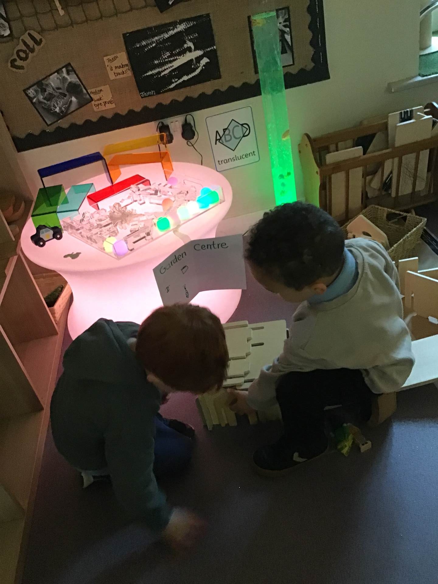 - Use a torch to create a makeshift "light table" and experiment with colour and translucency using transparent objects like glass beads or acrylic sheets.
