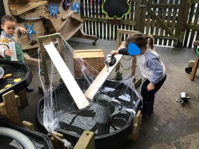 Storytime was a highlight of the week, as we brought the classic tale of the Gingerbread Man to life through our puppet show. The children's eyes sparkled with delight as they retold the story and then got creative in our dough kitchen, crafting their very own gingerbread men. The sweet aroma of freshly baked treats wafted through the air, as we continued the baking theme making mince pies on Wednesday. In our art area, we reinforced our concept of "down" through a series of fun activities, perfectly complemented by our Rhyme Time favourite, "Incy Wincy Spider". As we sang and acted out the song, we explored the idea of rain coming down, which beautifully linked to our learning from the previous week. The children's understanding of this concept grew, and they were able to apply it to various situations, demonstrating their developing problem-solving skills.