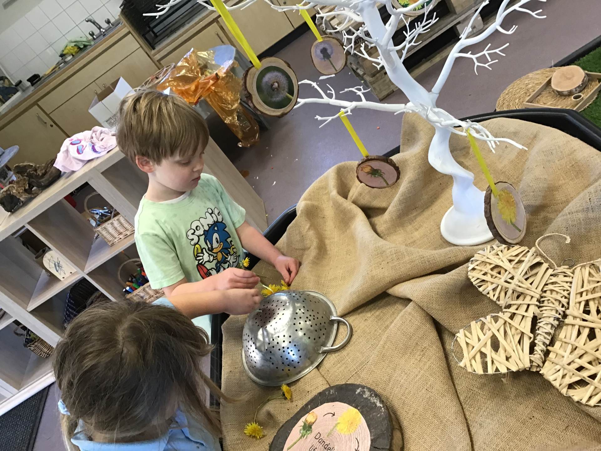 Beyond the seaside, our learning journey has been guided by the children’s fascination with dandelions. A simple question about these sunny yellow flowers blossomed into a full-fledged exploration of their lifecycle. We embarked on a dandelion hunt, filling our baskets with these cheerful blooms. The children were particularly captivated by the dandelion clocks (seed heads), marveling at their delicate structure. We then used these "clocks" for a fine motor activity, threading the stems through a colander. This activity not only strengthened their hand-eye coordination but also provided a tactile and engaging way to interact with nature.