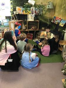 Thursday was a particularly exciting day, as the Honeybees celebrated World Book Day in style! The classroom was a vibrant tapestry of beloved characters brought to life, with each child proudly showcasing their favourite book-inspired costume. The highlight of the day was undoubtedly the special story time led by the Year 6 pupils. This heartwarming collaboration fostered a sense of community and provided a wonderful opportunity for the younger children to be inspired by their older peers.