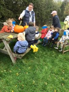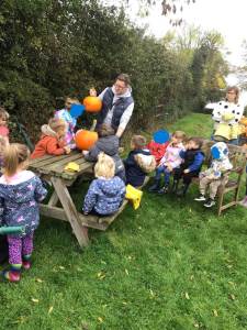 But the learning and laughter weren't confined to our classroom! We had a truly magnificent time on our special trip to St. Francis's Field. The crisp autumn air and the rustle of leaves underfoot added to the excitement as we embarked on an unforgettable journey. The children absolutely loved picking their very own bright orange pumpkins, carefully choosing the perfect ones to take back to Honeybees. Their faces lit up with pure joy! We also had a fantastic time on a thrilling scavenger hunt, with little eyes eagerly searching for hidden treasures – it was a brilliant way to explore the field and discover new things.