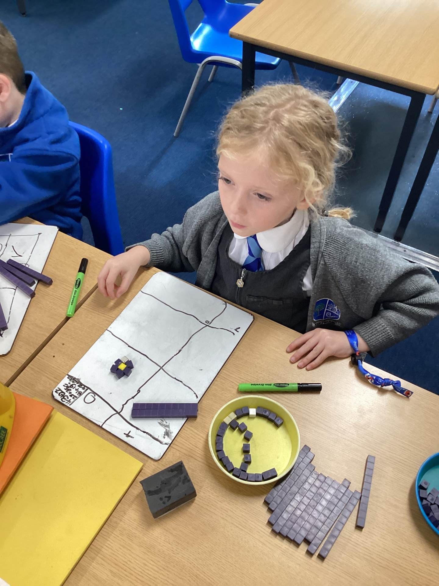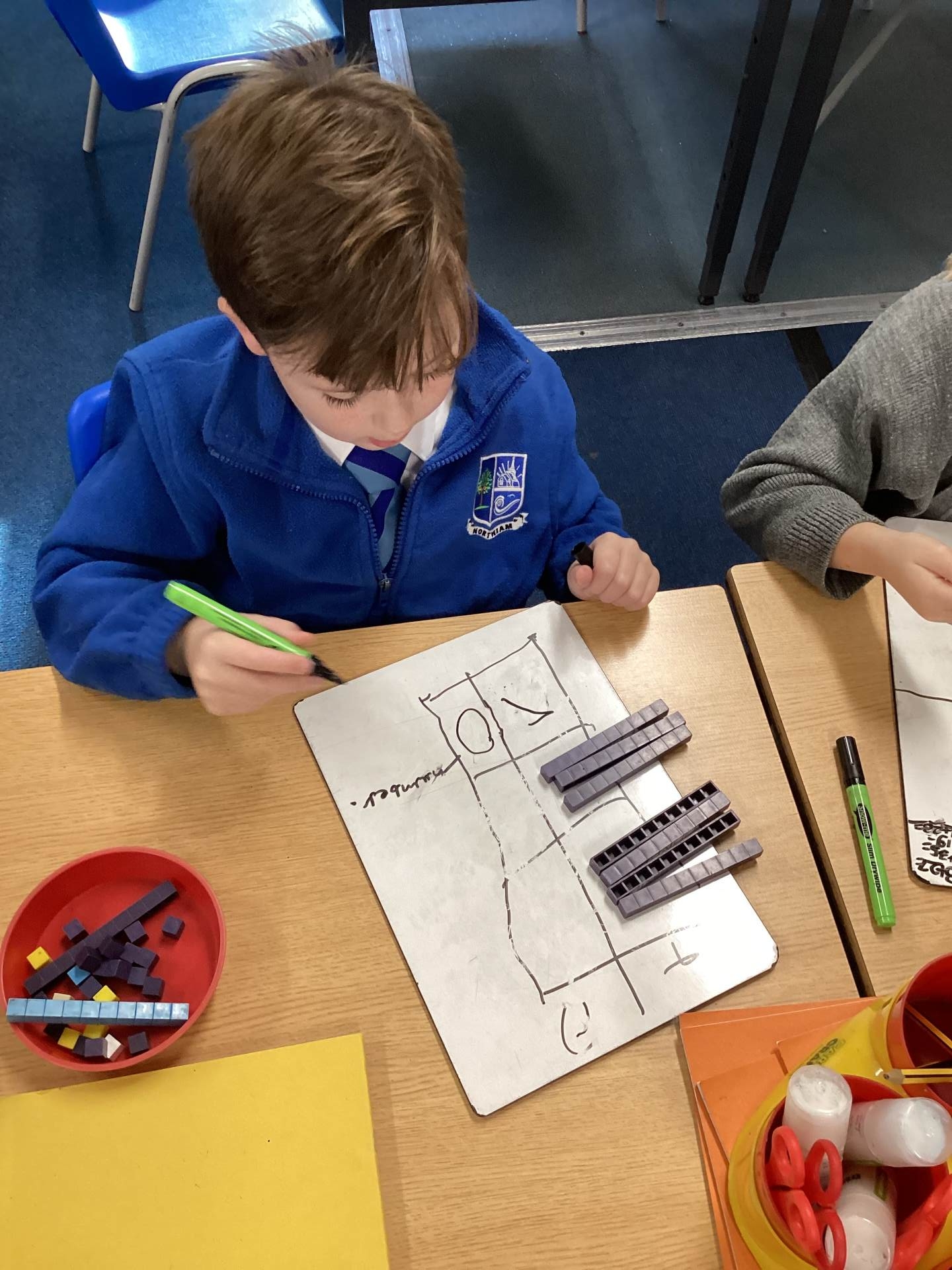 Year 2 have been learning how to add 2-digit numbers in Maths this week. They learnt how to represent this using tens and ones and a tens and ones grid. They picked this up quickly and learnt that you must always add the ones first and that if you have 10 or more ones you need to exchange it for a ten. Well done year 2!